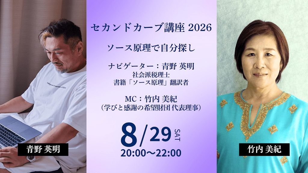 セカンドカーブ講座2023/12/2 21:382026/2/1 16:30毎月1回行われる人生経験豊富な講師陣によるオンライン講義。セカンドカーブを生きるためのヒントをいただき、学びをシェアします。自分のミッションを見つめる仲間と出会い、感謝の循環のコミュニティの形成を目指します。