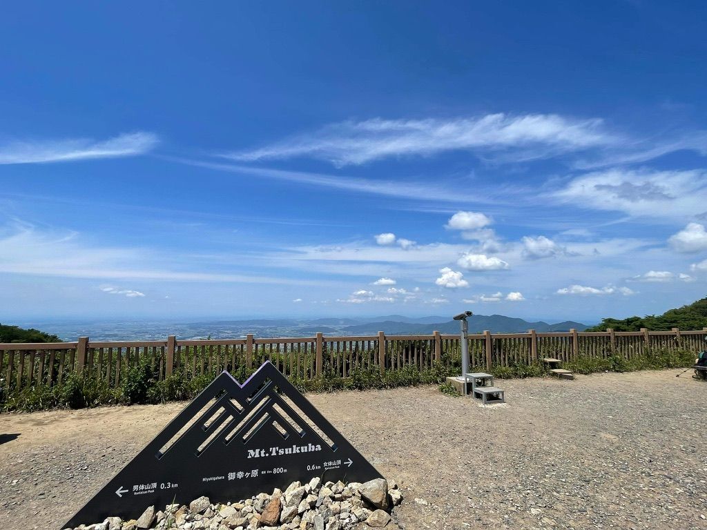 ここから眺める関東平野の景色は僕自身は何度も見ているが、やはりケーブルカーではなく、自分の足で登ってきたからこその充足感があり、感動もひとしおだった。この景色、天候が悪ければ、ただただ目の前が真っ白なだけで、何も見えない。今回、僕がつくばでの最大のおすすめスポットだと感じている、ここ女体山山頂からの景色を、みなさんに見ていただけたことが何より嬉しかった。